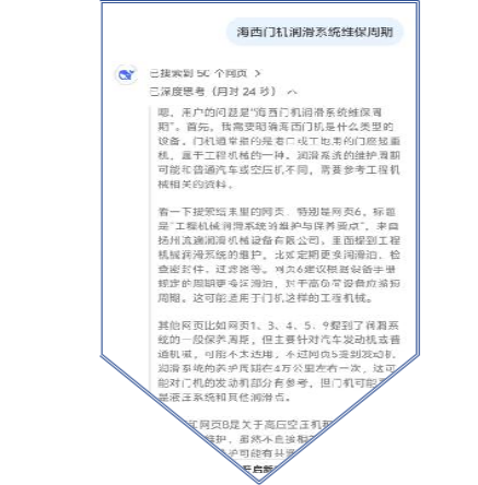 Deep Seek的情景應用,暢通消化梗阻,提升運營效率。 設備維保、應急搶修常常面臨技術堵點、流程紊亂等問題,這些“梗阻”不僅影響作業(yè)效率,還大大增加運營成本。射陽港區(qū)設備保障組通過Deep Seek其強大的場景應用能力,按照部件故障、維護保養(yǎng)、更新升級等類別發(fā)布指令,AI系統(tǒng)能夠快速識別并解決這些問題,保障運營效率的最大化。