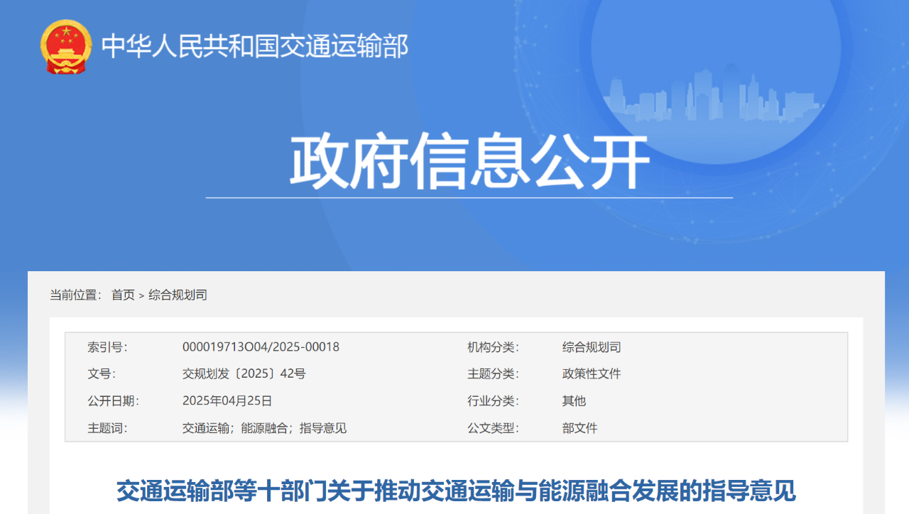 交通運(yùn)輸部等十部門關(guān)于推動(dòng)交通運(yùn)輸與能源融合發(fā)展的指導(dǎo)意見