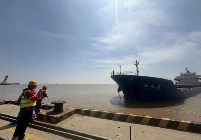 在射陽港區(qū)碼頭前沿,穿戴整齊調(diào)度員正和船長、碼頭操作人員通過對講機保持密切溝通,根據(jù)實際情況發(fā)出靠泊指令,指揮船舶控制航速、調(diào)整船位,確保船舶平行、緩慢地靠近泊位。同時提醒碼頭操作人員準備好纜繩、護舷等設(shè)備,完成系纜固定船舶工作。滿分穿搭為調(diào)度員的日常工作保駕護航,精準調(diào)度為下一步的裝卸作業(yè)提供了堅實的保障和高效的指引。