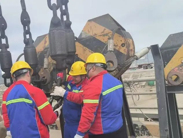 安全,是港口生產(chǎn)永遠不可逾越的紅線,設(shè)備安全更是重中之重。生產(chǎn)保障組24小時堅守崗位,時刻守護著港口設(shè)備的安全運行。他們依據(jù)門機使用頻率、作業(yè)環(huán)境及磨損數(shù)據(jù)等詳細信息,“量體裁衣”地為每一臺設(shè)備制定保養(yǎng)方案。為關(guān)鍵部位充分潤滑,確保“鋼鐵巨人”能夠運轉(zhuǎn)流暢;鋼絲繩等重點部件接受“點檢員”細致入微的檢查,不放過一絲隱患裂痕,為安全生產(chǎn)筑起堅實的“防護墻”。