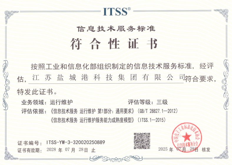 近日,科技集團(tuán)順利通過國(guó)家信息技術(shù)服務(wù)標(biāo)準(zhǔn)(ITSS)三級(jí)認(rèn)證,這一成果的取得是對(duì)公司技術(shù)實(shí)力、服務(wù)流程及管理規(guī)范的高度認(rèn)可,標(biāo)志著科技集團(tuán)在信息技術(shù)服務(wù)領(lǐng)域發(fā)展邁上新臺(tái)階。