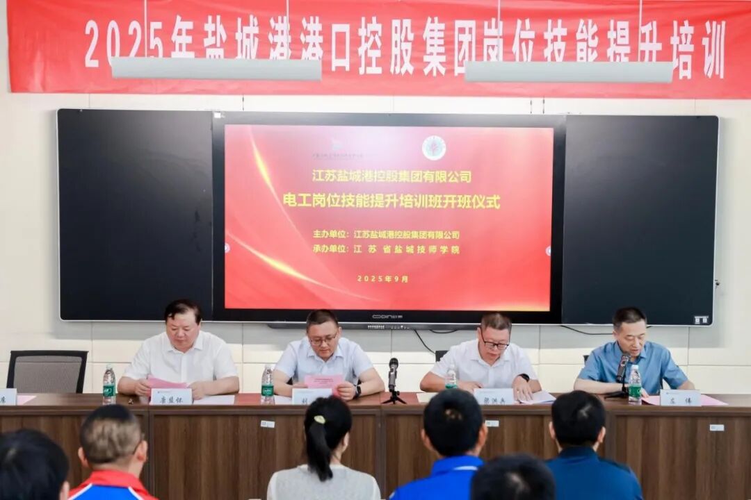 9月27日,鹽城港集團電工取證班在鹽城技師學院正式開班,標志著鹽城港集團、鹽城技師學院與鹽城市人才集團攜手開啟 “三方協同、精準賦能” 人才培養新篇章,為港口人才隊伍建設注入新活力。鹽城技師學院唐監懷校長,鹽城港集團黨委委員、副總經理梁洪兵,黃海金控黨委委員、副總經理、鹽城市人才集團董事長劉偉及校方相關領導出席活動,共計30名參訓學員參加開班儀式。
