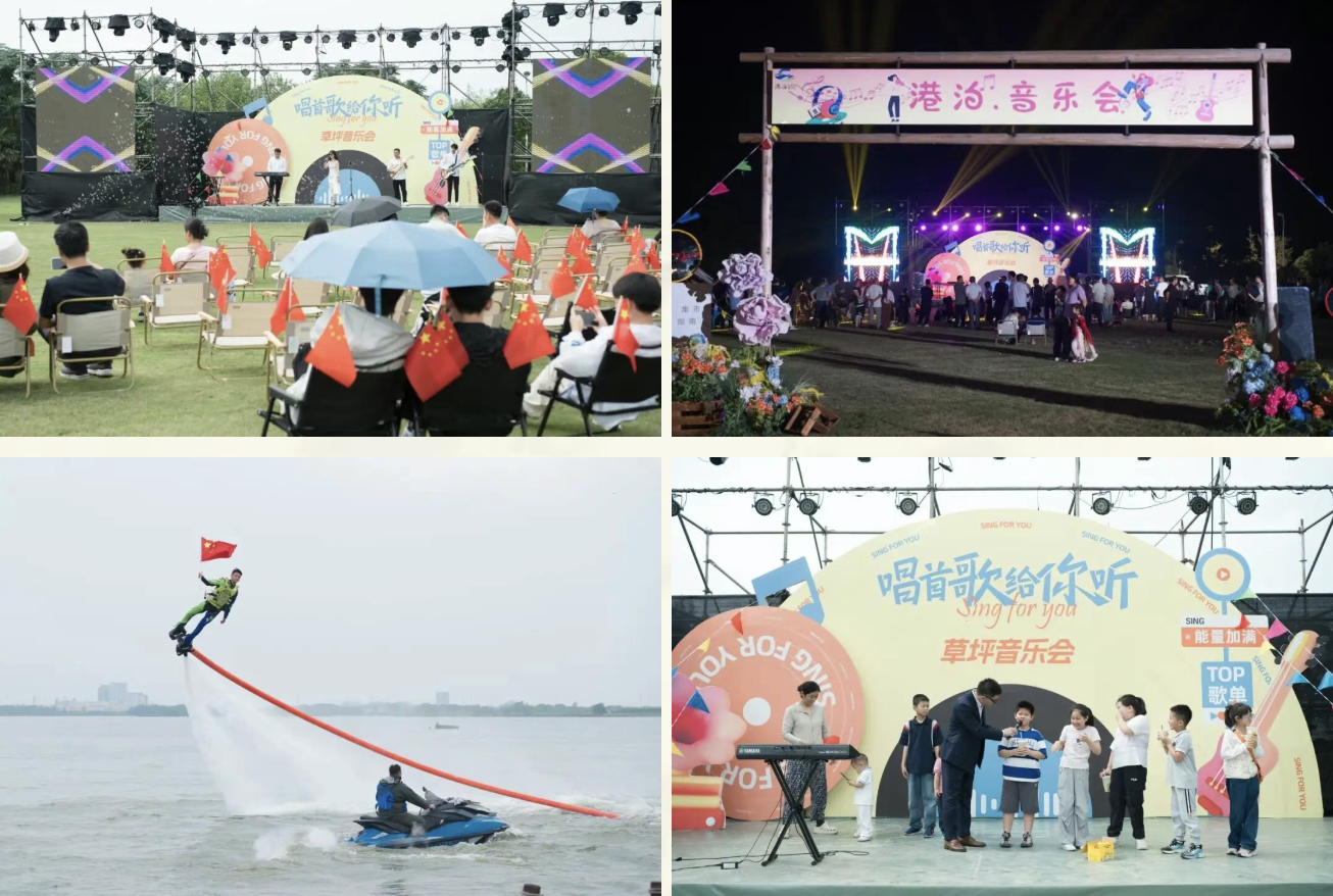 如果說非遺是文化的沉淀,那么音樂、露營與水上運動則為假日注入了青春活力。日月湖上,摩托艇、空中飛人等水上項目吸引年輕人逐浪而行;草坪露營區(qū)飄起燒烤香氣,伴隨著民謠樂隊的現(xiàn)場演唱,游客們圍坐暢談,盡享秋日浪漫。創(chuàng)意市集與文創(chuàng)展區(qū)不僅為游客提供了將好物帶回家的機(jī)會,更讓人們通過視覺、聽覺、味覺、觸覺等多維度的感受,領(lǐng)略港泊文旅的獨特韻味。“沒想到非遺能這么潮!白天玩水上項目,晚上看火壺表演,假期安排得滿滿當(dāng)當(dāng)。”從南京自駕而來的游客表示。