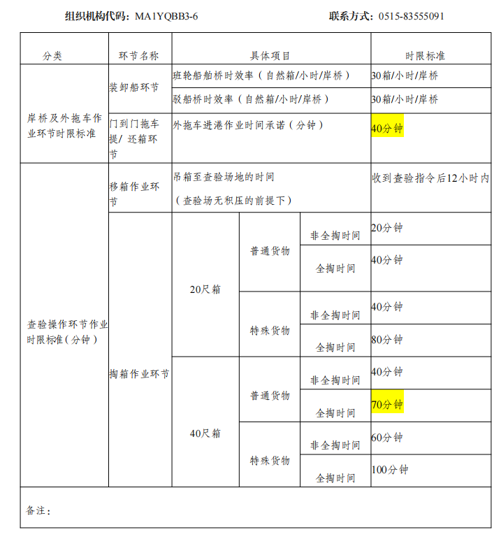 江蘇鹽城港上港國際港務有限公司作業時限標準