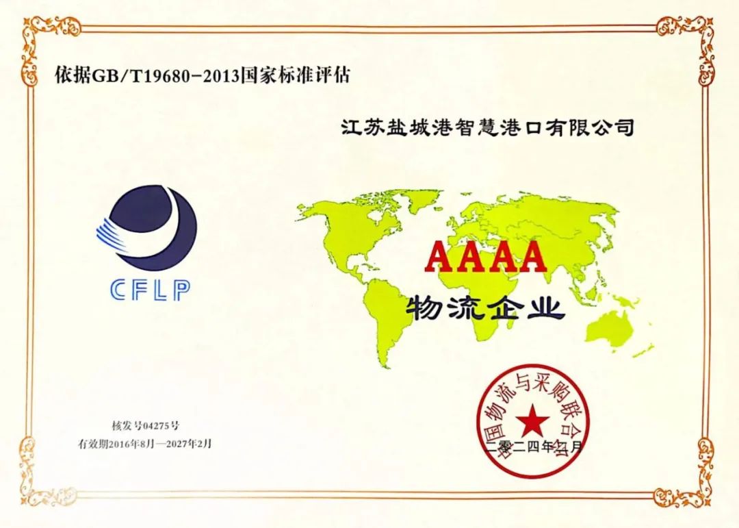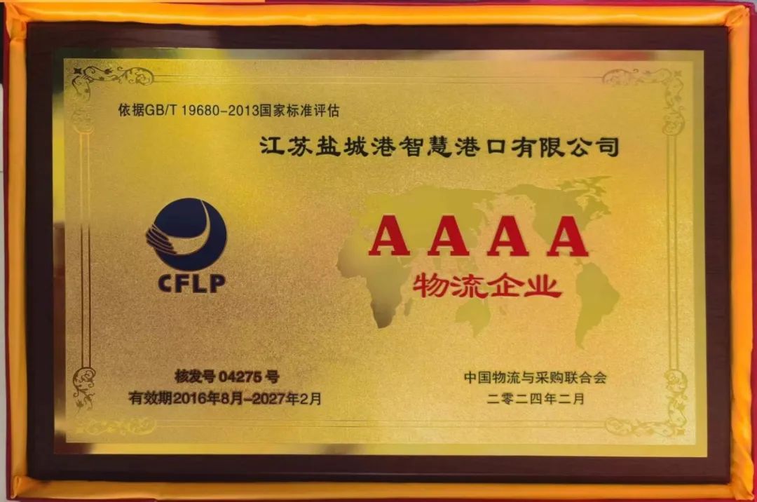 喜報!鹽城港智慧港口公司被評為“4A級物流企業”