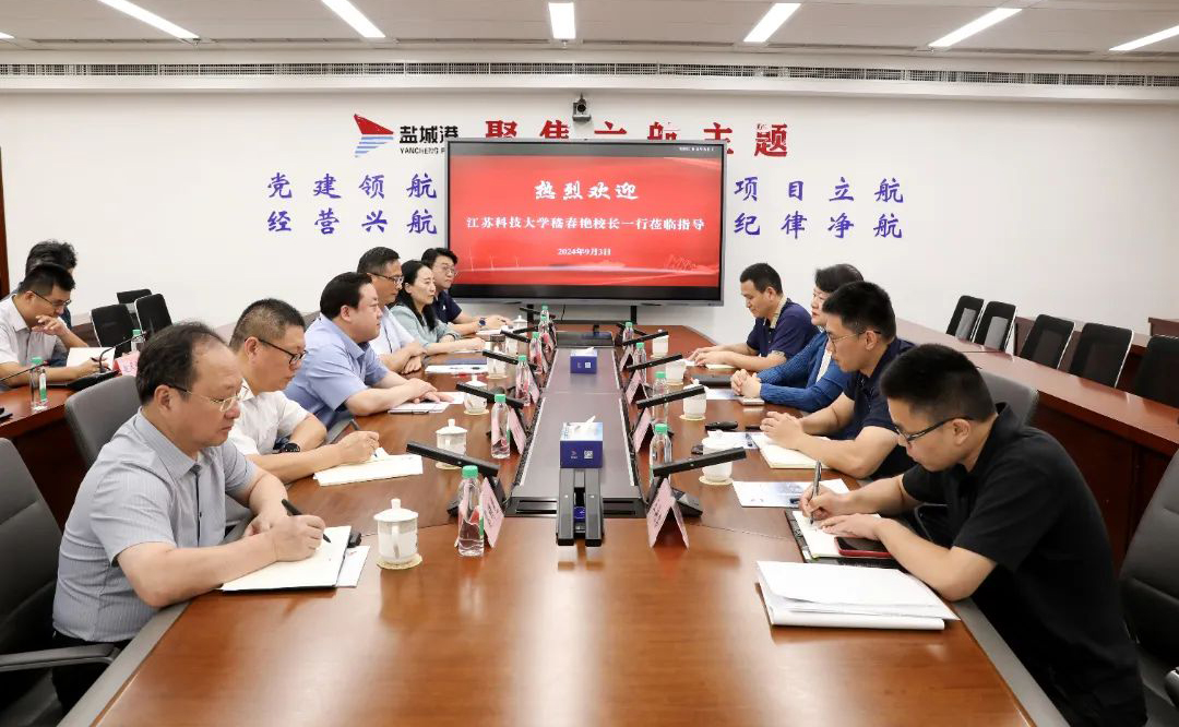 周正雄對(duì)嵇春艷一行的到來(lái)表示歡迎,對(duì)江蘇科技大學(xué)在鹽城港發(fā)展過(guò)程中給予的關(guān)心和支持表示感謝,并介紹了鹽城港相關(guān)情況。他說(shuō),由于地理環(huán)境的特殊性,鹽城港長(zhǎng)年面臨著復(fù)雜的水文地質(zhì)條件,一定程度上限制了港口生產(chǎn)能級(jí)的提升。面對(duì)宏觀形勢(shì)、吞吐能級(jí)、新質(zhì)生產(chǎn)力等“發(fā)展拐點(diǎn)”,集團(tuán)積極組織開(kāi)展航道清淤、軟基處理、泥沙利用、極端天氣應(yīng)對(duì)等課題研究,希望通過(guò)“揭榜掛帥”的形式,積極聯(lián)合高校及單位共同研究解決路徑,著力破除制約港口高質(zhì)量發(fā)展的不利因素,進(jìn)而有效降低運(yùn)營(yíng)維護(hù)成本,實(shí)現(xiàn)效益提升。希望江蘇科技大學(xué)一如既往地關(guān)心支持集團(tuán)的發(fā)展,堅(jiān)持“實(shí)用性”原則,共同推動(dòng)課題研究與成果轉(zhuǎn)化,持續(xù)深化合作交流,攜手打造“港口科研項(xiàng)目升級(jí)版”,推動(dòng)海洋經(jīng)濟(jì)高質(zhì)量發(fā)展。