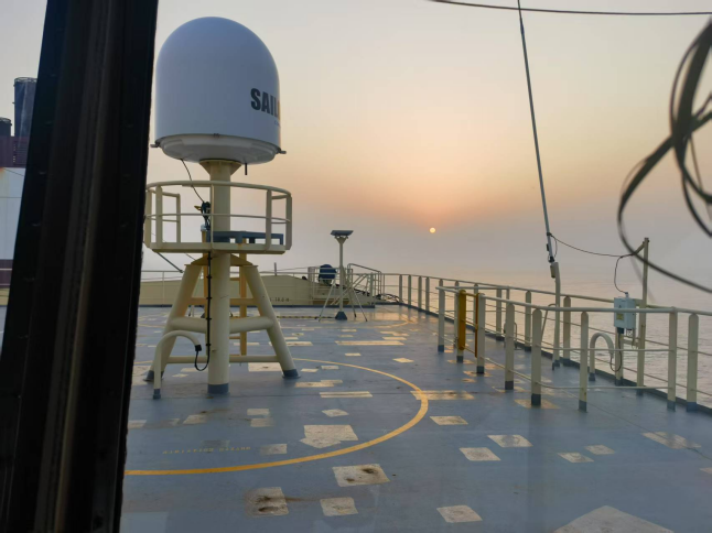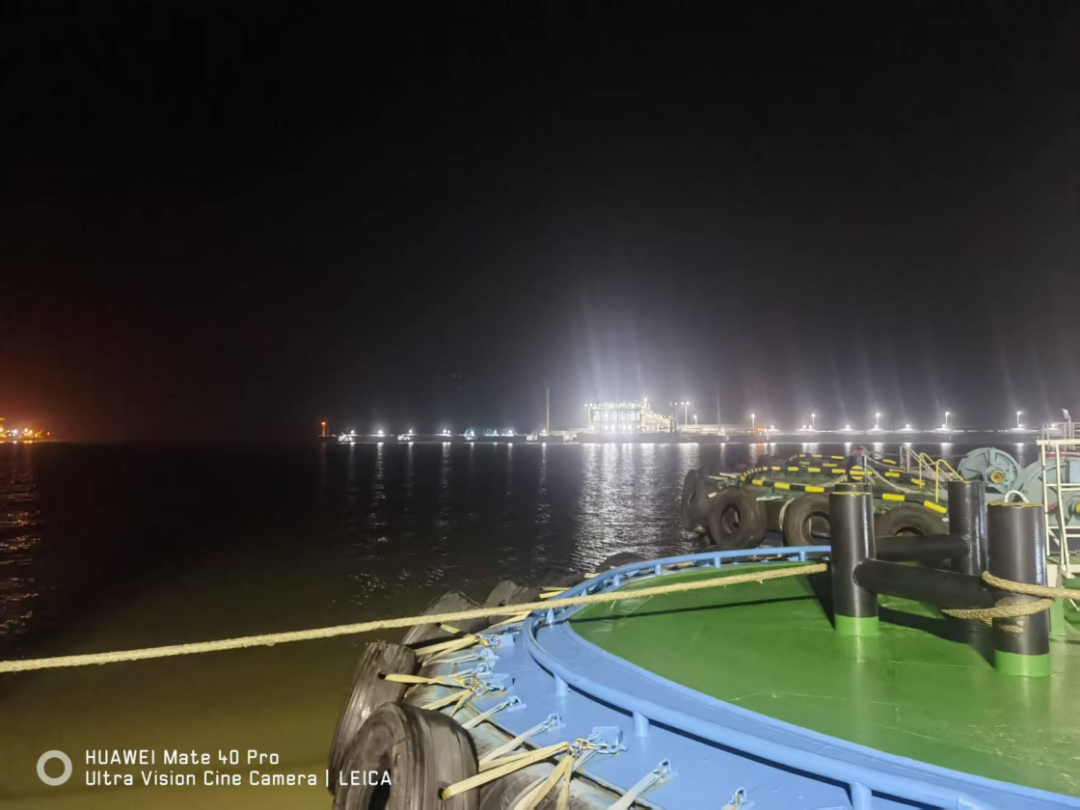 面對“晨昏蒙影”特殊時段(黎明前光線昏暗期),引航員提前1小時登輪,與船長反復核對潮汐、流速和船舶操縱特性。在朝陽初升的關鍵窗口期,引航員通過精準操控,在大馬力拖輪協同配合下,克服船舶慣性、風流壓差等技術難點完成精準靠泊。