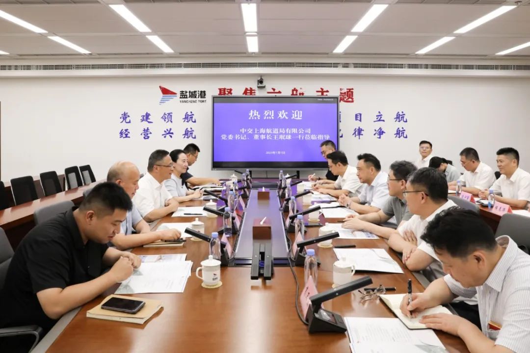 7月7日,集團黨委書記、董事長陸帥會見中交上航局黨委書記、董事長王珉球一行,就進一步深化合作進行交流。集團總經理袁欣,集團黨委委員、副總經理丁安廣,中交上海航道局及鹽城港集團相關負責同志等參加。