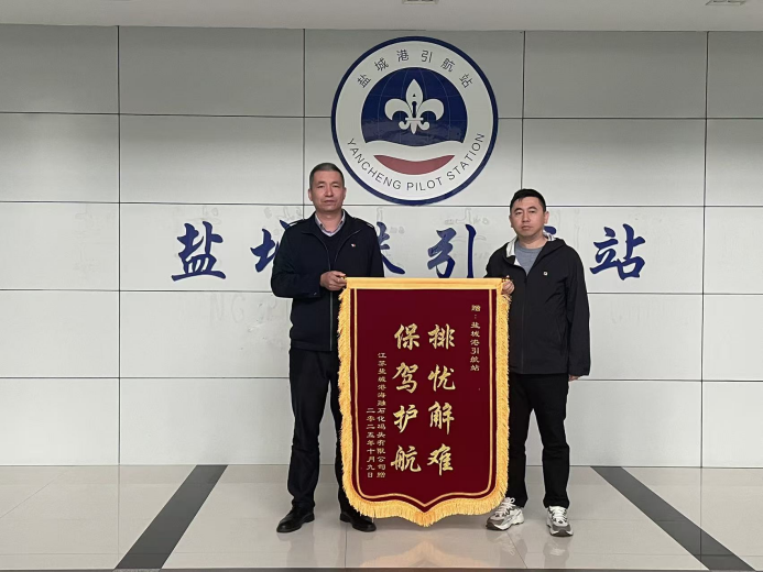 接到求助后,引航站迅速組織專業(yè)團(tuán)隊(duì)趕赴現(xiàn)場(chǎng)。在登輪勘察后,團(tuán)隊(duì)成員綜合研判氣象條件與作業(yè)進(jìn)度,決定待貨物卸載完畢后再擇機(jī)出港。當(dāng)晚22:00,引航員登輪,在拖輪配合下頂風(fēng)浪開(kāi)始引航。面對(duì)復(fù)雜海況,引航員依托豐富經(jīng)驗(yàn)謹(jǐn)慎操縱船舶,通過(guò)實(shí)時(shí)監(jiān)測(cè)風(fēng)浪、科學(xué)規(guī)劃航線,確保船舶以安全航速穩(wěn)步離港。船舶航行途中遭遇突發(fā)陣風(fēng),引航員迅速采取應(yīng)急措施,及時(shí)修正航向,歷經(jīng)數(shù)小時(shí)緊張作業(yè),最終成功將“探界者”輪安全引領(lǐng)至外海避風(fēng)錨地。事后,江蘇鹽城港海融石化碼頭有限公司專程向鹽城港引航站贈(zèng)送錦旗,書(shū)以“排憂解難 保駕護(hù)航”表達(dá)謝意。
