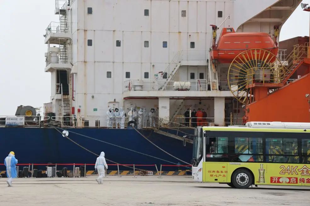 為確保中國船員換班工作“零等待”“零延時”,濱海港區第一時間啟動船員換班閉環管控工作流程和應急處置流程,與濱海縣聯防聯控機制各成員單位協同配合,確保換班中國船員自國門至家門的全程閉環管理。讓船員感受到回到家的溫暖。