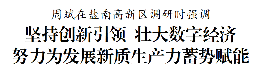6月19日下午,市委書記周斌到鹽南高新區(qū)調(diào)研數(shù)字經(jīng)濟(jì)和機(jī)器人產(chǎn)業(yè)發(fā)展工作。他強(qiáng)調(diào),要認(rèn)真學(xué)習(xí)貫徹習(xí)近平總書記關(guān)于發(fā)展數(shù)字經(jīng)濟(jì)的重要論述,把握數(shù)字時(shí)代新趨勢(shì),按照中央精神和省市有關(guān)部署要求,加快推動(dòng)數(shù)字產(chǎn)業(yè)化、產(chǎn)業(yè)數(shù)字化,培育壯大數(shù)字經(jīng)濟(jì),促進(jìn)“數(shù)實(shí)融合”發(fā)展,更大力度建設(shè)“數(shù)字鹽城”,為發(fā)展新質(zhì)生產(chǎn)力增添新動(dòng)能。