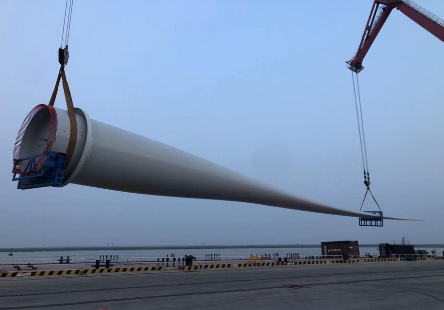 6月16日,射陽(yáng)港區(qū)順利完成了首船107米風(fēng)電葉片的裝卸作業(yè)工作,這是中國(guó)近海岸風(fēng)力發(fā)電場(chǎng)第一套107米發(fā)電機(jī)組葉片,也是射陽(yáng)港區(qū)有史以來裝卸作業(yè)的最長(zhǎng)風(fēng)電葉片,再次刷新了射陽(yáng)港區(qū)風(fēng)電葉片吊裝紀(jì)錄,標(biāo)志著射陽(yáng)港區(qū)成功躋身百米以上級(jí)風(fēng)電葉片發(fā)運(yùn)港口行列。這次成功裝卸,創(chuàng)造了鹽城港裝卸風(fēng)電葉片長(zhǎng)度新紀(jì)錄,向鹽城港集團(tuán)成立兩周年獻(xiàn)上了一份厚禮。