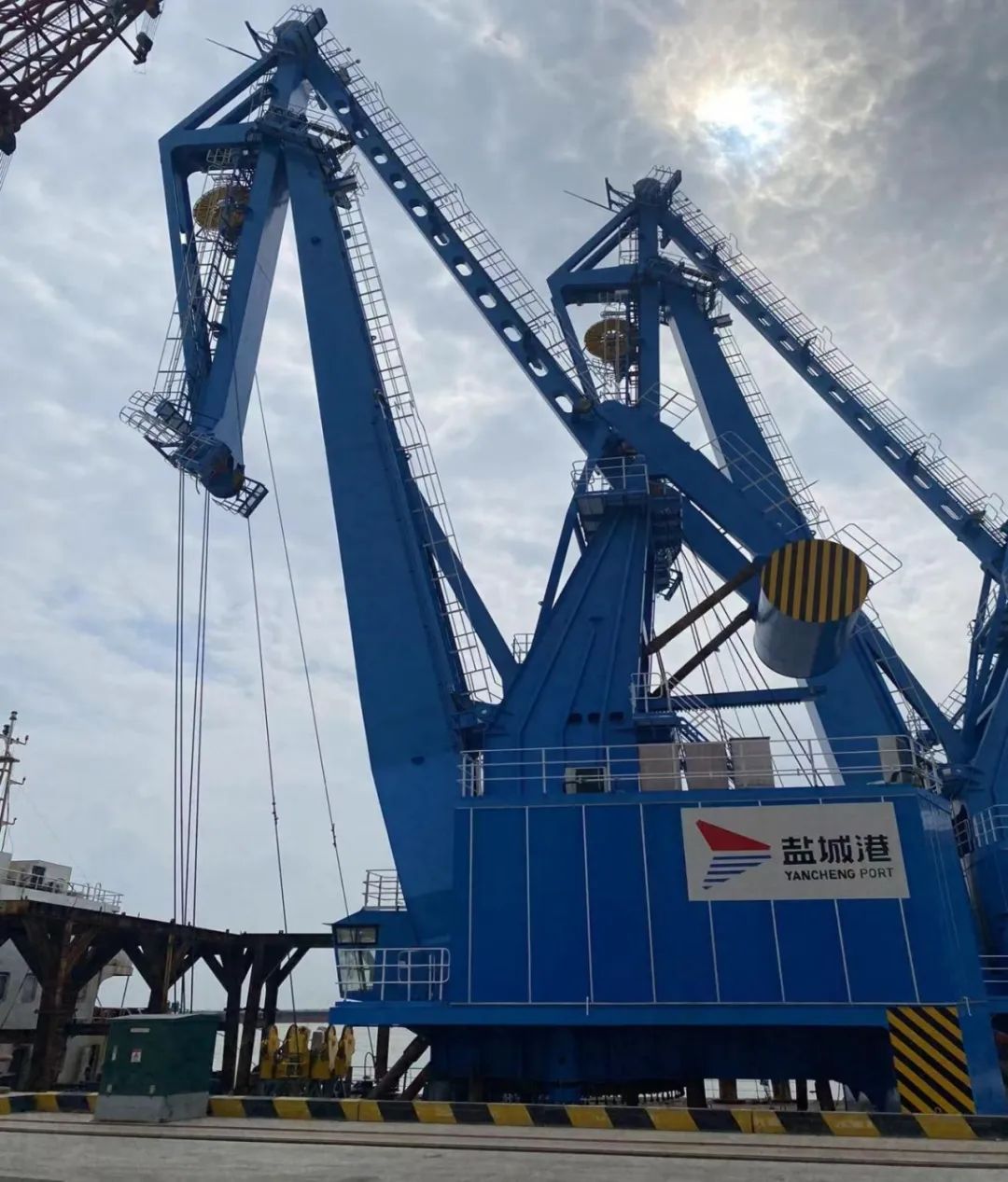 據(jù)悉,本次抵港門機(jī)為2臺(tái)40-43門座式起重機(jī),由上海振華重工為小蟒牛作業(yè)區(qū)量身定制,具有吊運(yùn)噸位高、抓取距離遠(yuǎn)、故障率低等特點(diǎn),可搭配抓斗、吊鉤、吸盤等多種吊具,靈活切換作業(yè)模式,操作性能強(qiáng),作業(yè)效能高。為確保兩臺(tái)門機(jī)及時(shí)安全落戶響水港區(qū),集團(tuán)設(shè)備技術(shù)部統(tǒng)籌協(xié)調(diào),響水港區(qū)生產(chǎn)經(jīng)營部、投資發(fā)展部積極配合,根據(jù)航道情況及靠泊條件,采用門架和轉(zhuǎn)盤分離的方式運(yùn)輸,大輪靠泊后先用浮吊將門架部分吊裝上岸落軌后,再將轉(zhuǎn)盤部分吊至門架上筒體處通過高強(qiáng)度螺栓連接的方式完成整機(jī)的總裝。后續(xù)這兩臺(tái)門機(jī)將進(jìn)入調(diào)試階段,投產(chǎn)指日可待。