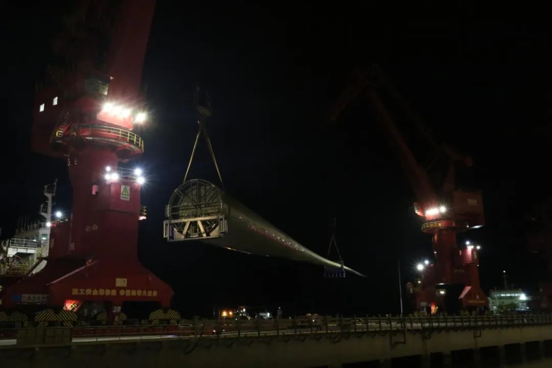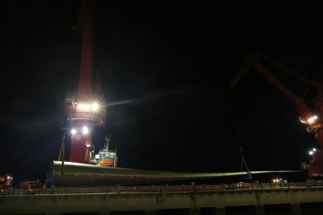 123米!全球最長風電葉片在鹽城港射陽港區成功完成裝卸