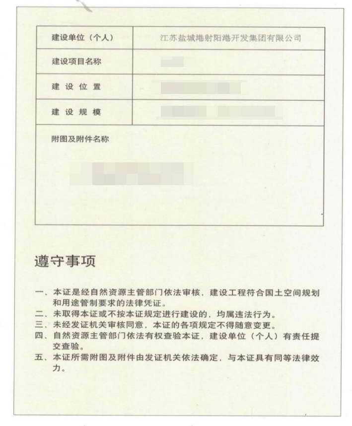 【大干四季度 奮力奪全年】鹽城港射陽港區綜合倉儲物流項目建設工程規劃許可證順利獲批