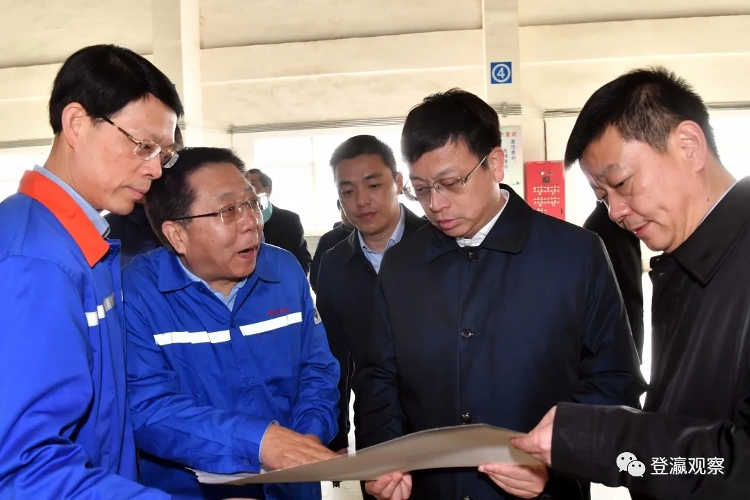 ▲市長曹路寶察看金風科技整機總裝廠和16MW傳動實驗室