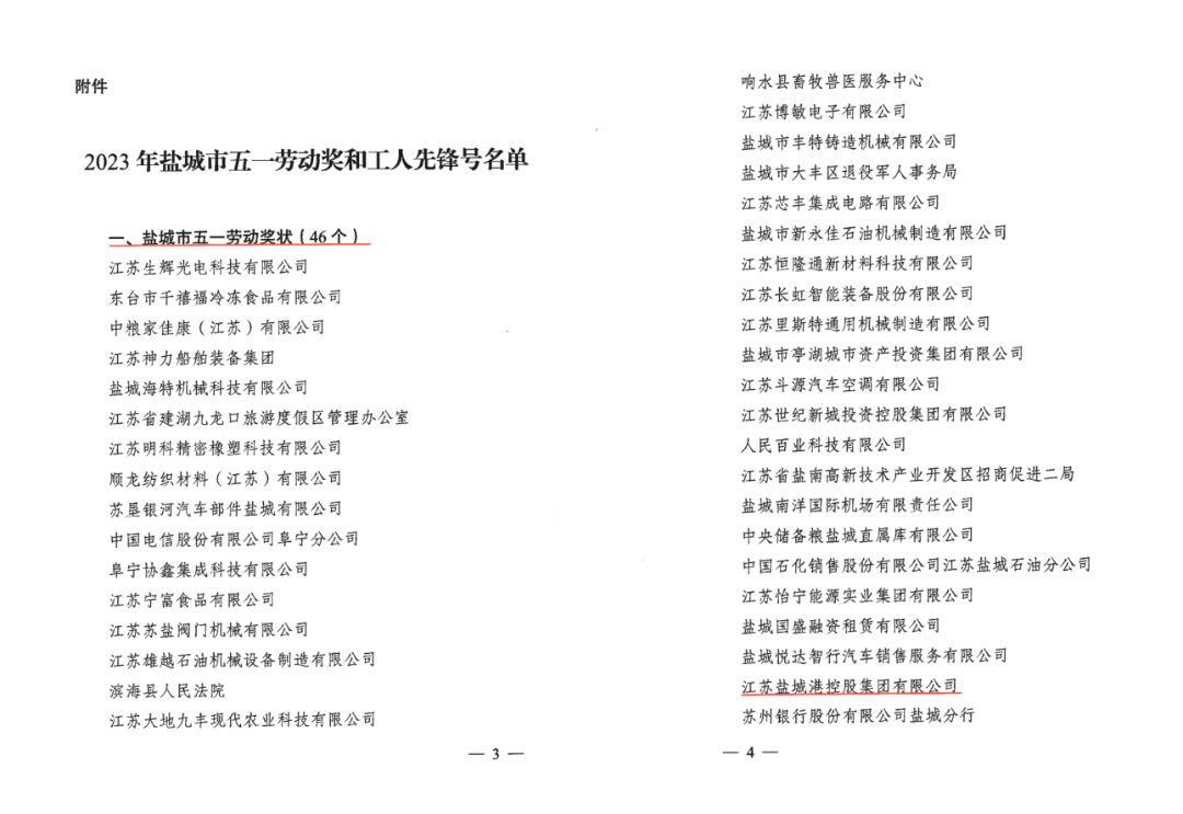 近日,鹽城市總工會印發(fā)《關于授予2023年鹽城市五一勞動獎和工人先鋒號的通知》,我集團再獲三項表彰。